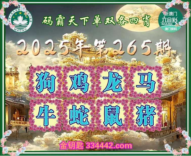 265期:【码霸天下】 🌷单双各四肖🌷开:猴10错